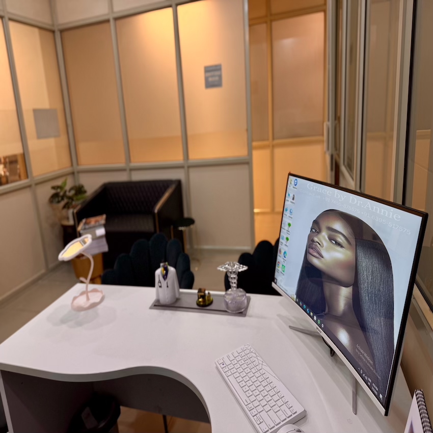 The clinic, MAK Aesthetics-Grace by Dr. Annie, offers a range of skincare and aesthetic treatments such as deep cleansing, hydrafacials, anti-aging treatments (Botox, Fillers), microneedling, chemical peels, and laser hair removal. The clinic is led by a certified skincare specialist named Annie.
